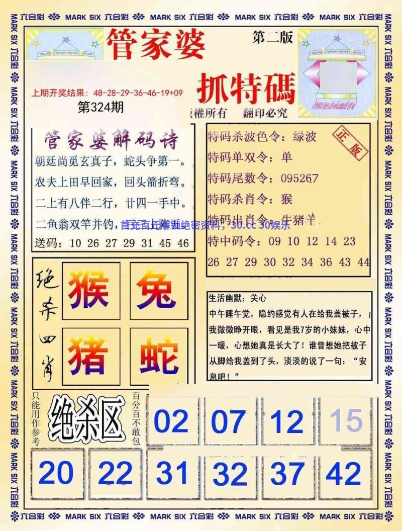 325期:马会一点红/会员猜猜诗/特码报/马会内幕诗/中特五尾
